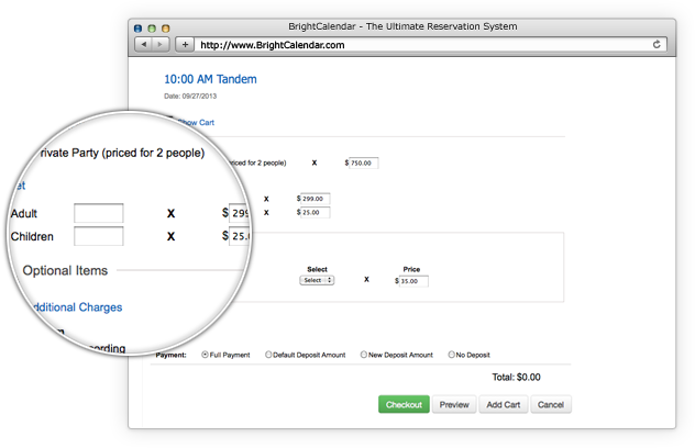 Not every booking comes in online. Sometimes a customer calls, walks up, or books through a referral — and you need a way to enter it yourself. With the admin checkout, you can quickly add trips without risking double-bookings. Adjust pricing on the fly, apply discounts or coupons, and choose from preset deposit amounts or custom payments.